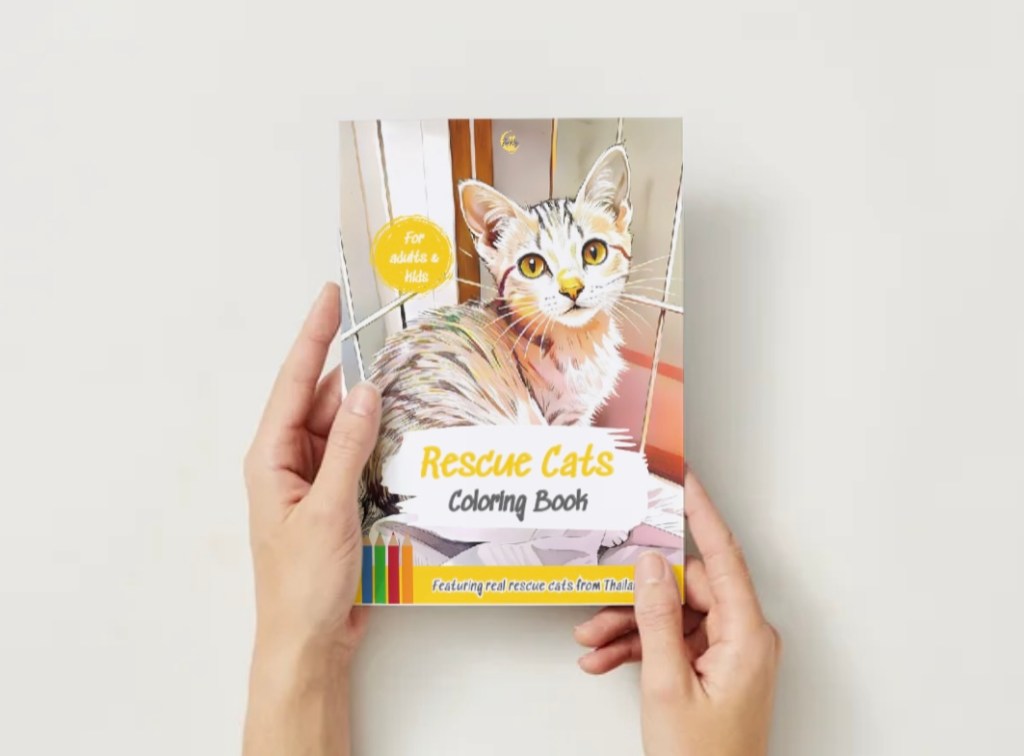 Each page of the Rescue Cats Coloring Book takes you on an inspiring journey, featuring the heartfelt rescue story of a real Thai cat and a beautiful illustration to unwind, destress, and connect to your creativity.